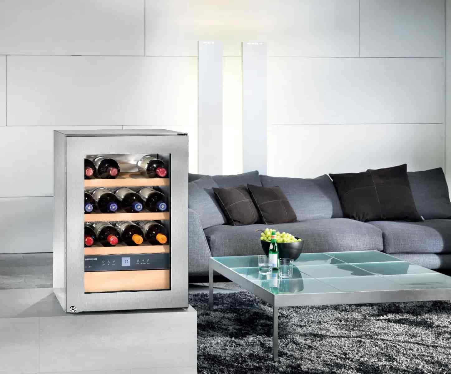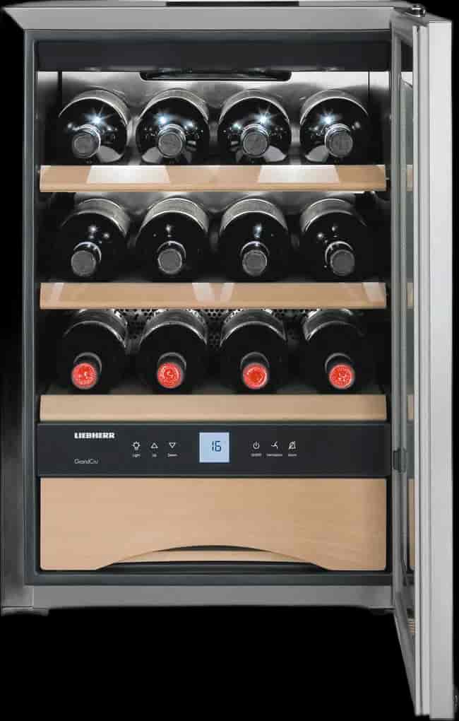 En konstant temperatur råder i hela interiören i dessa apparater. Det kan ställas in mellan +5 ° C och +20 ° C efter behov. Vinlagringsskåp är idealiska för långvarig lagring och mogning av viner. Beroende på den inställda temperaturen kan dessa apparater emellertid också lagra mer gott om lager av vin vid serveringstemperatur. I GrandCru- och Vinothek-serien erbjuder Liebherr flerskiktiga vinskåp i olika storlekar och med olika funktioner.