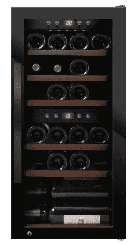 Unikt för WineExpert är det stora utrymmet för vitt vin (vanligtvis är utrymmet för rött större). Detta passar dig som vill avnjuta vitt vin lika ofta som rött. Vinkylen är utformad för att passa alla typer av flaskor, så att du också kan få plats med ditt mousserande vin. Vinkylens funktioner styrs med äkta knappar och inställningarna visas på digital skärm.